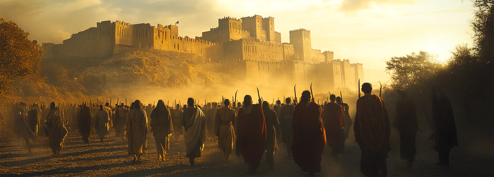 Jericho was the first city the Israelites conquered after entering the land of Canaan. Archaeological discoveries show that it had both an inner and outer wall, with the outer wall alone about two meters thick—making it an almost impenetrable fortress. It is estimated that around 1,500 people lived there at the time. God gave Joshua specific instructions on how to take the city. Rather than using military force, God commanded them to act in His way: the entire nation was to march around the city once a day for six days, and on the seventh day, they were to march around it seven times. When the priests blew their trumpets and the people shouted, the walls collapsed.